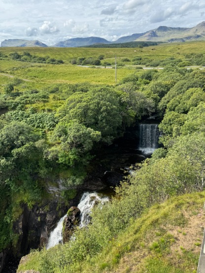 On the drive to the Quiraing, we stopped to take pictures at Lealt Falls and Mealt Falls. They are both quick stops, but worthwhile for the views, and you may even see a Scotsman playing the bagpipes!