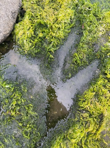 After a quick lunch at a side of the road cafe, we stopped at An Corran/Slipway Beach to swim and look for dinosaur footprints, which I’m thrilled to say we found! It was surreal to put our feet in the spot where a Megalosaurus dinosaur once stood over 60 million years ago. My older son loves to swim no matter the temperature so he braved the cold water while the rest of us enjoyed exploring the rocky shore. Low tide gives you the best chance of finding footprints.