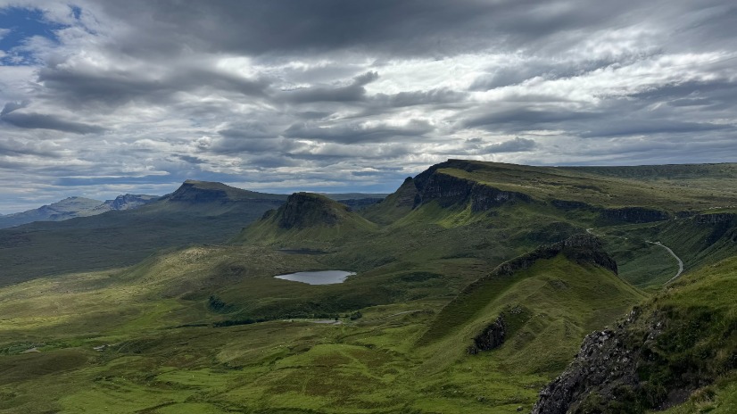 Our final hike before leaving Skye was the Quiraing. This is another area where you can hike as long or short as you like. We ended up walking about 1.75 mi total. We took the middle trail from the car park and did not realize how very narrow and precarious the trail was so we went very slowly with the kids. I reckon I grew several gray hairs trying to keep my boys away from the sheer drops off the side! If you’re with kids, I’d recommend taking the upper trail as it is much wider. Despite the treacherous conditions, we enjoyed incredible scenic views over the landscape.
