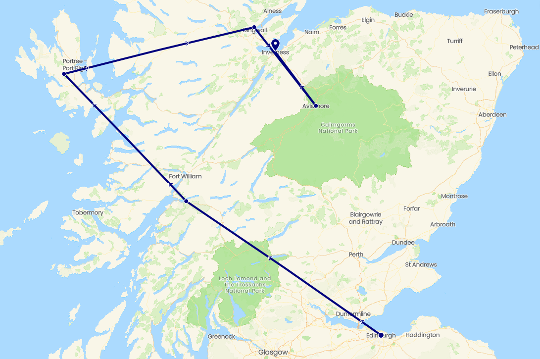 Last July, we took our big kids on a BIG trip…to Scotland! We had an unforgettable vacation exploring the Scottish coast and Highlands. I’m here to tell you that travel with kids isn’t always easy, but it is always worth it! While my husband and I wonder whether they will remember the incredible sights we saw, we know that they will never forget the life lessons and education that they get while traveling and seeing how other cultures differ from our own! There were times where we cringed at the extra costs (especially of uneaten food), but making memories as a family wins out over any minor inconveniences or additional costs every time. We spent 8 nights (1 in London, 6 in Scotland, and 1 in Manchester) in the United Kingdom and followed the route below. I’m detailing all of the highlights, including our lodging and activities, in this post. Please feel free to get in touch with me through the comments if you have any questions or just want to chat! I love to talk travel!